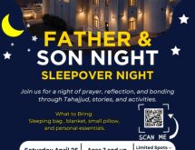 This unique overnight experience at the masjid will include Tahajjud and Fajr salah, engaging activities, and uplifting reminders, all designed to bring families closer through faith and shared moments. Itβs more than just a night β itβs an experience focused on connection, reflection, and brotherhood.